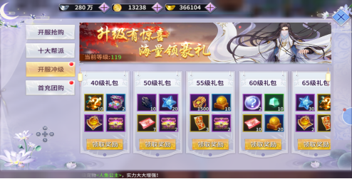 5. 除了等级,战力也很关键,游戏有非常多的活动,充值返利,争取资源合理化,追求性价比高的礼包或者道具。如下